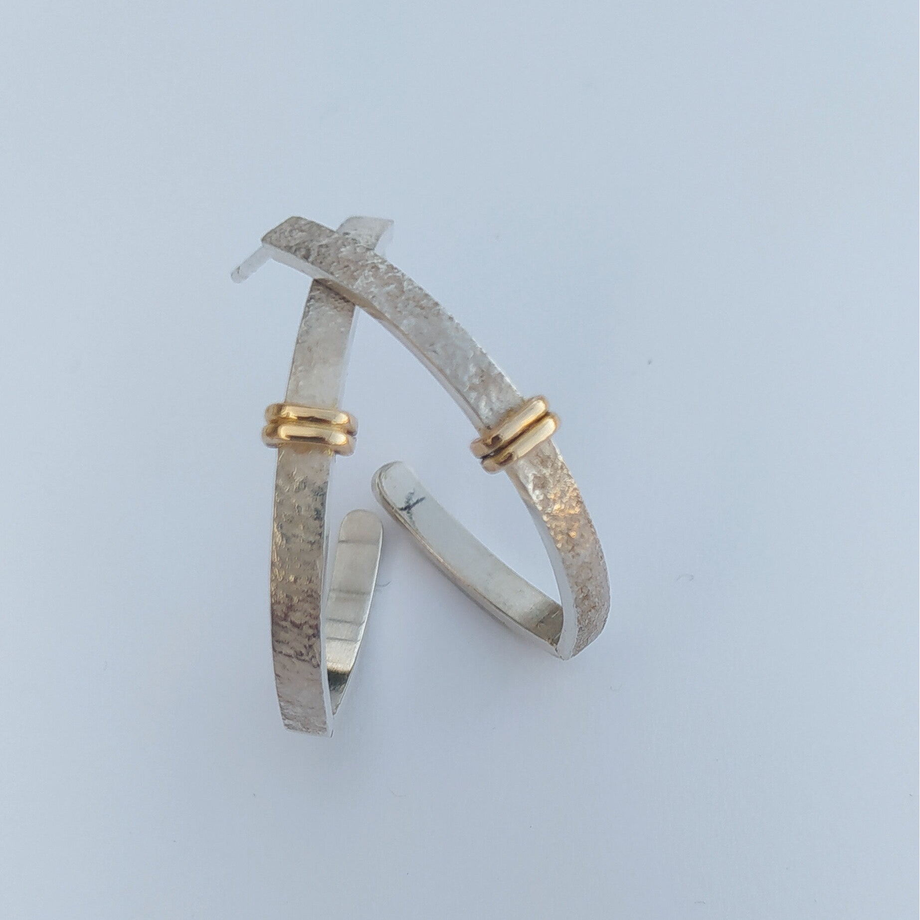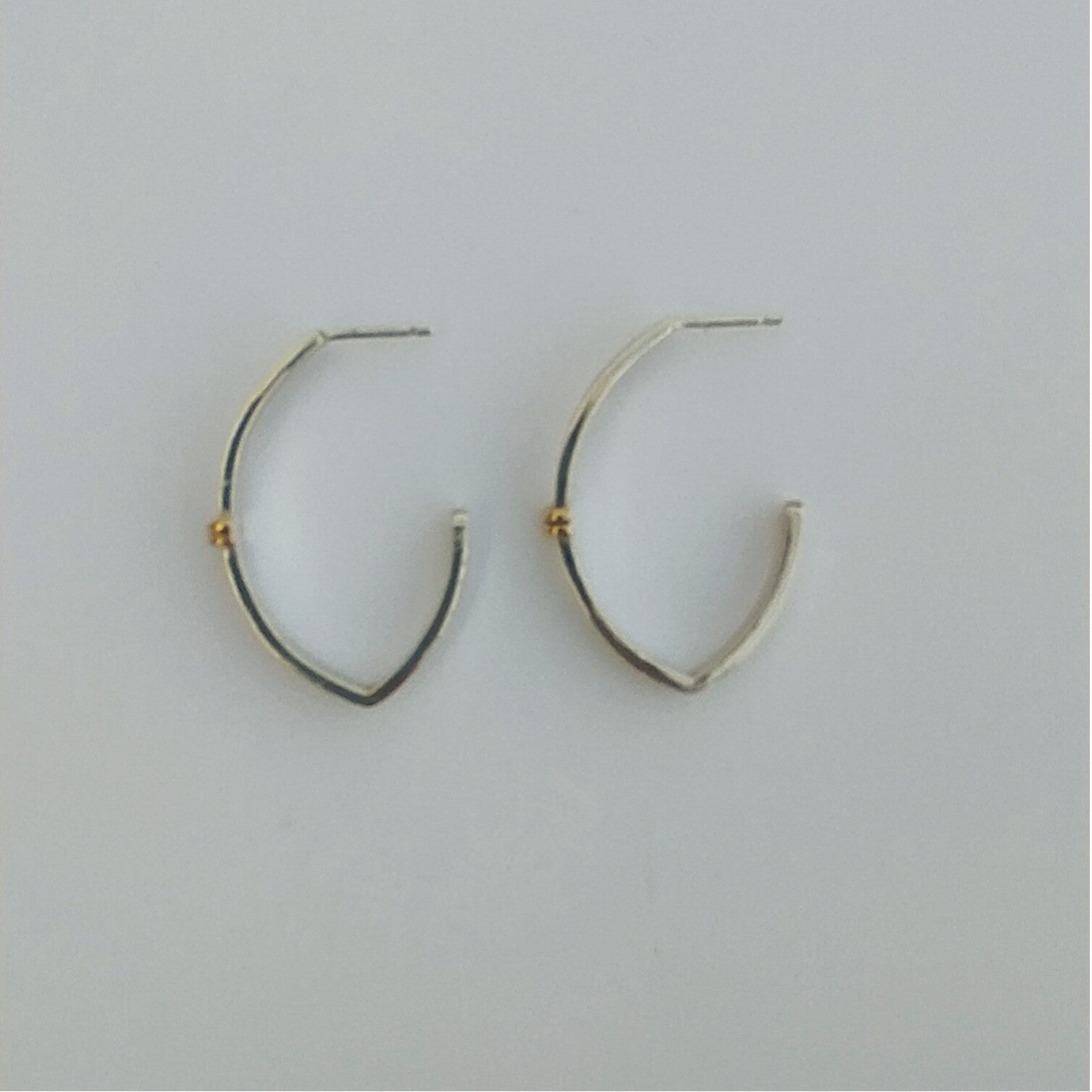 Courbe Précieuse, des boucles d'oreilles pendantes au design élégant et contemporain. Ces boucles d'oreilles ovales en argent martelé et or captent la lumière pour un éclat raffiné, parfait pour toute occasion. L' effet martelé apporte une texture unique qui met en valeur le contraste entre les deux métaux, ajoutant profondeur et caractère. Légères et confortables à porter, elles subliment à la fois une tenue de jour décontracté ou un look de soirée sophistiqué.