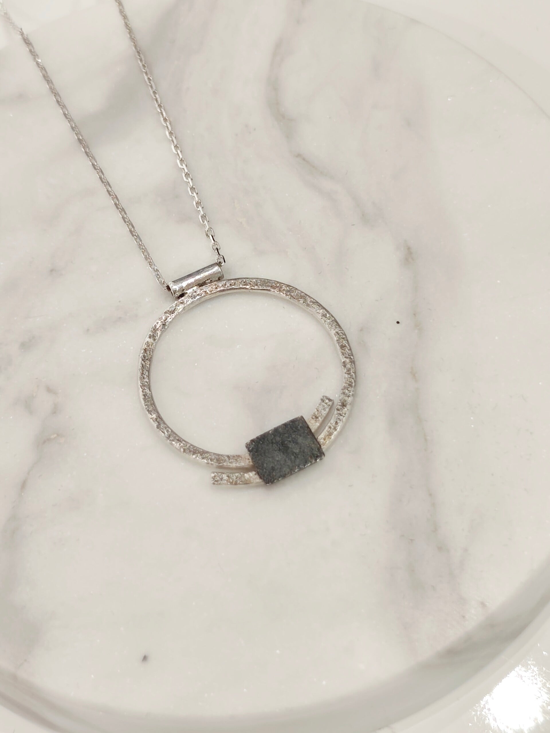 L’ensemble forme un pendentif graphique, épuré, facile à porter au quotidien comme sur une tenue plus élégante.